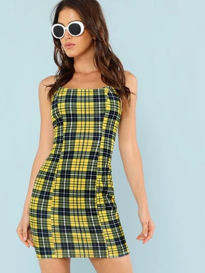 spaghetti strap plaid dress
