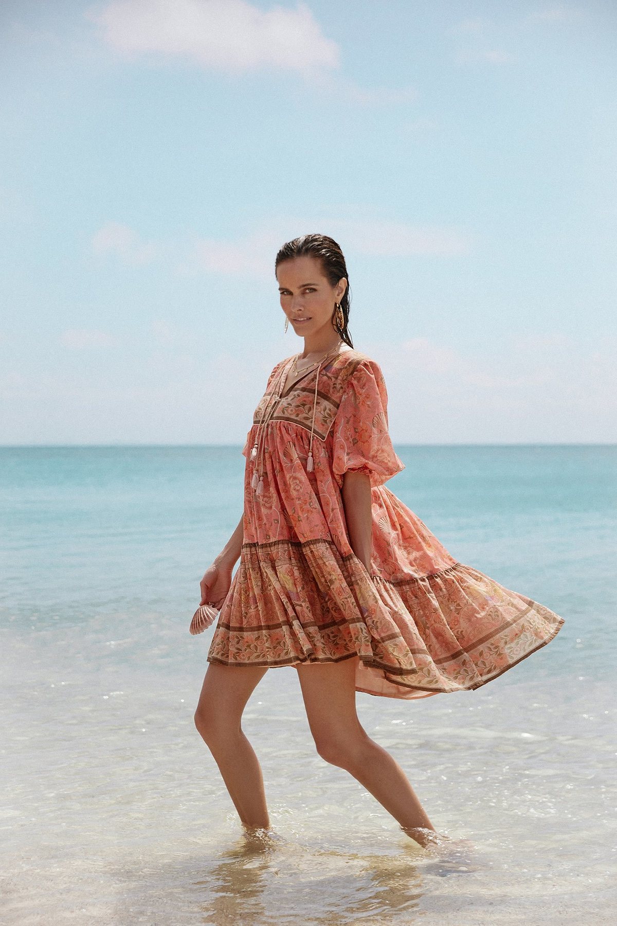 spell seashell boho mini dress