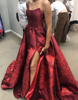 strapless floral gown