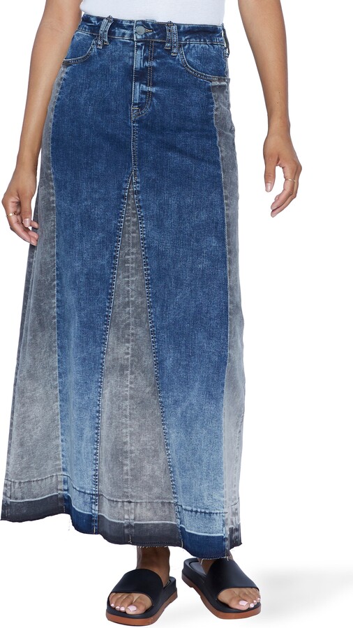 stretch denim maxi skirt