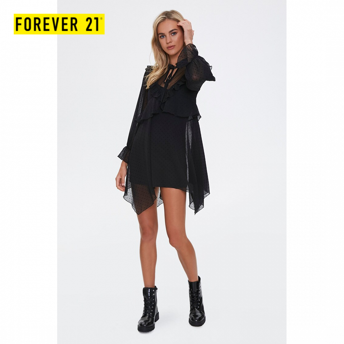 swiss dot ruffle trim dress forever 21