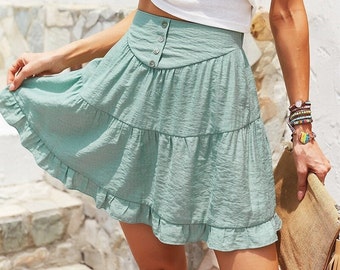 tan button down skirt