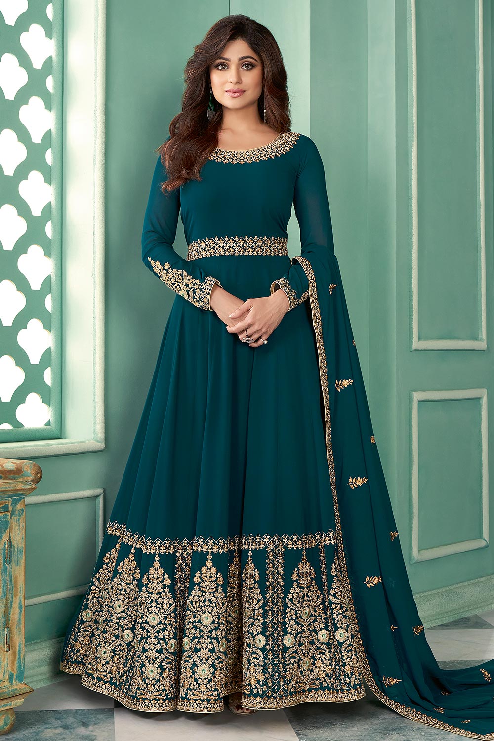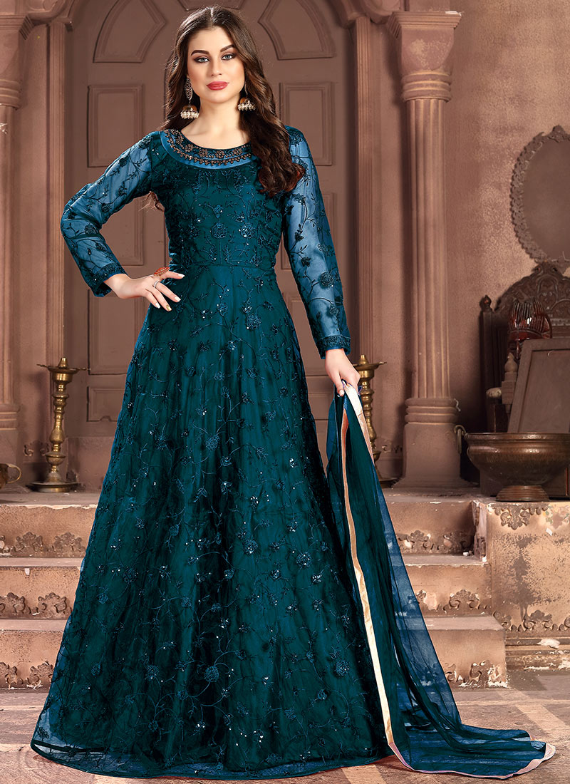 teal blue anarkali