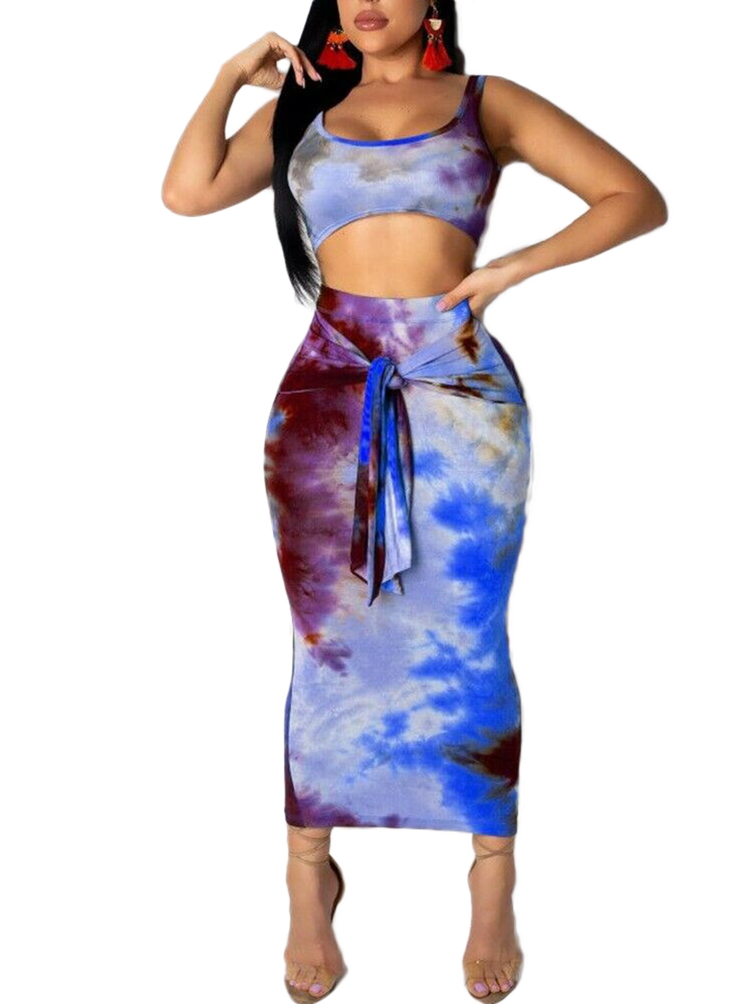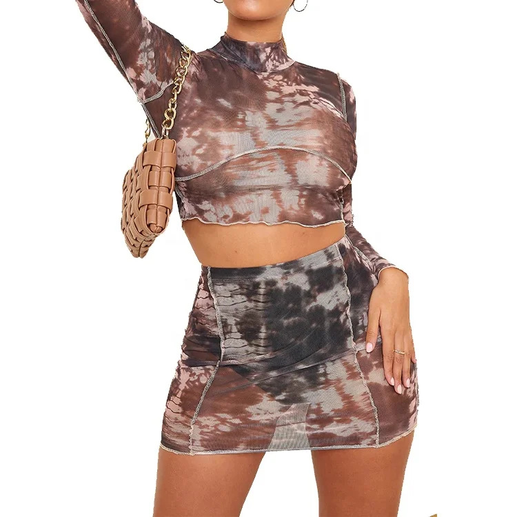 tie dye 2 piece skirt set