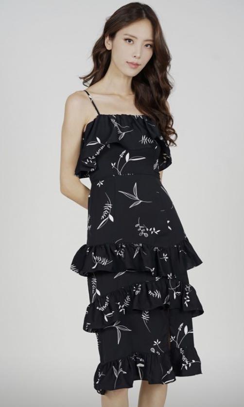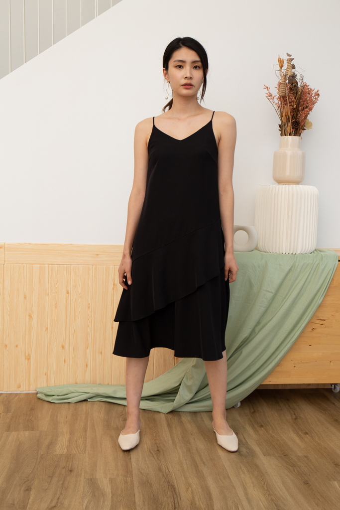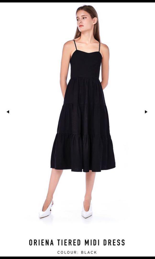 tiered black midi dress