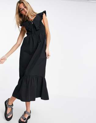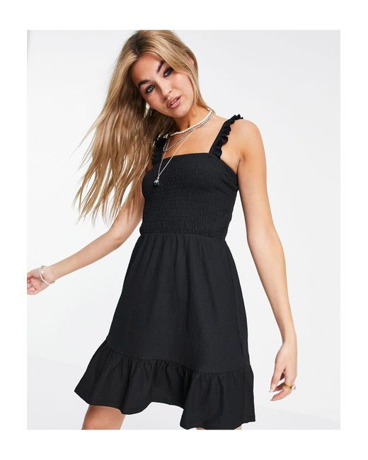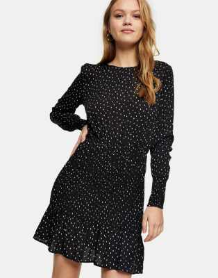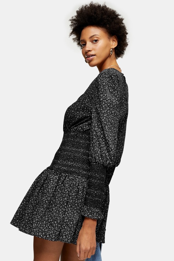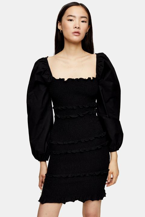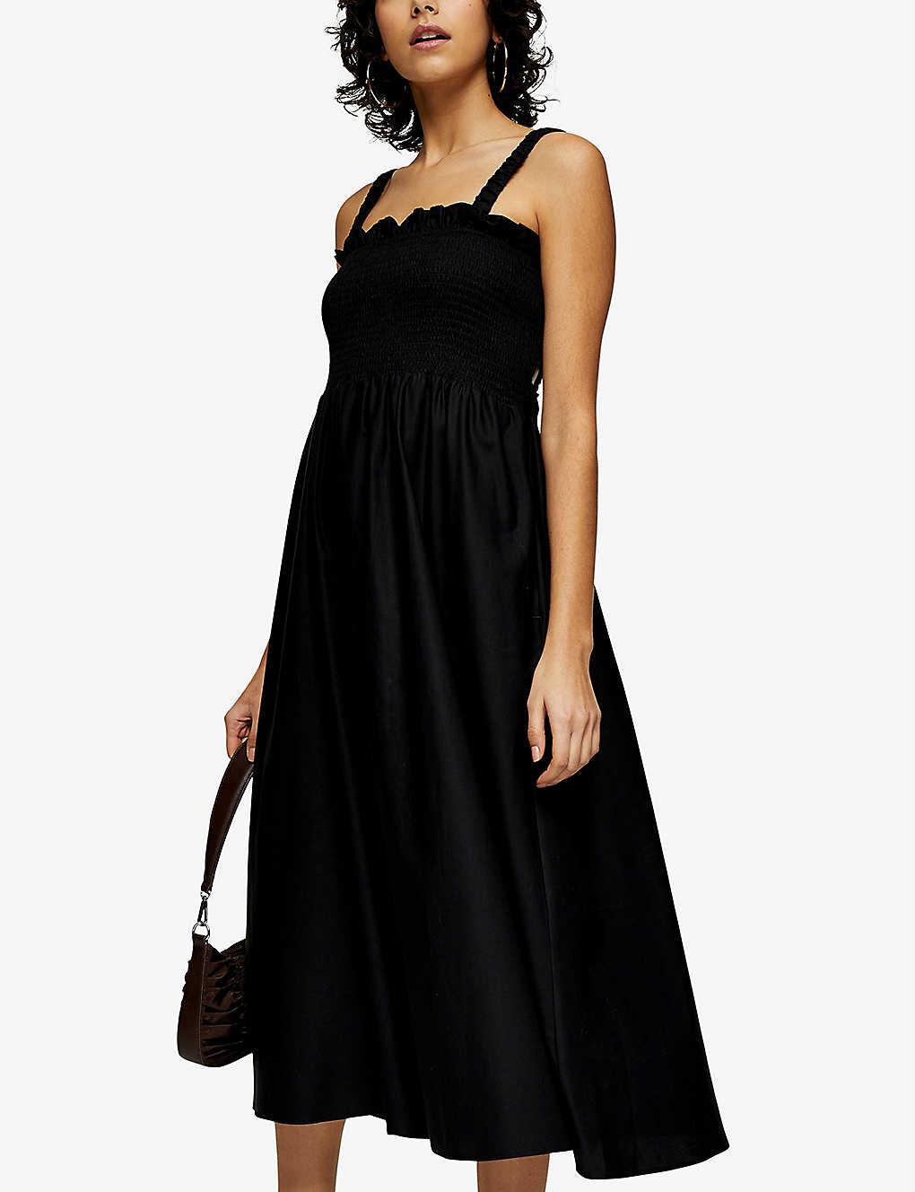 topshop black shirred dress