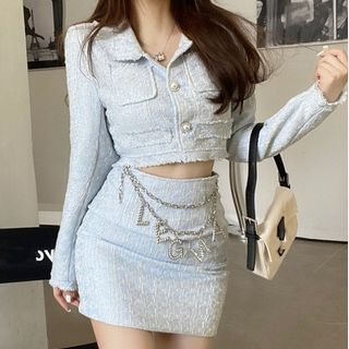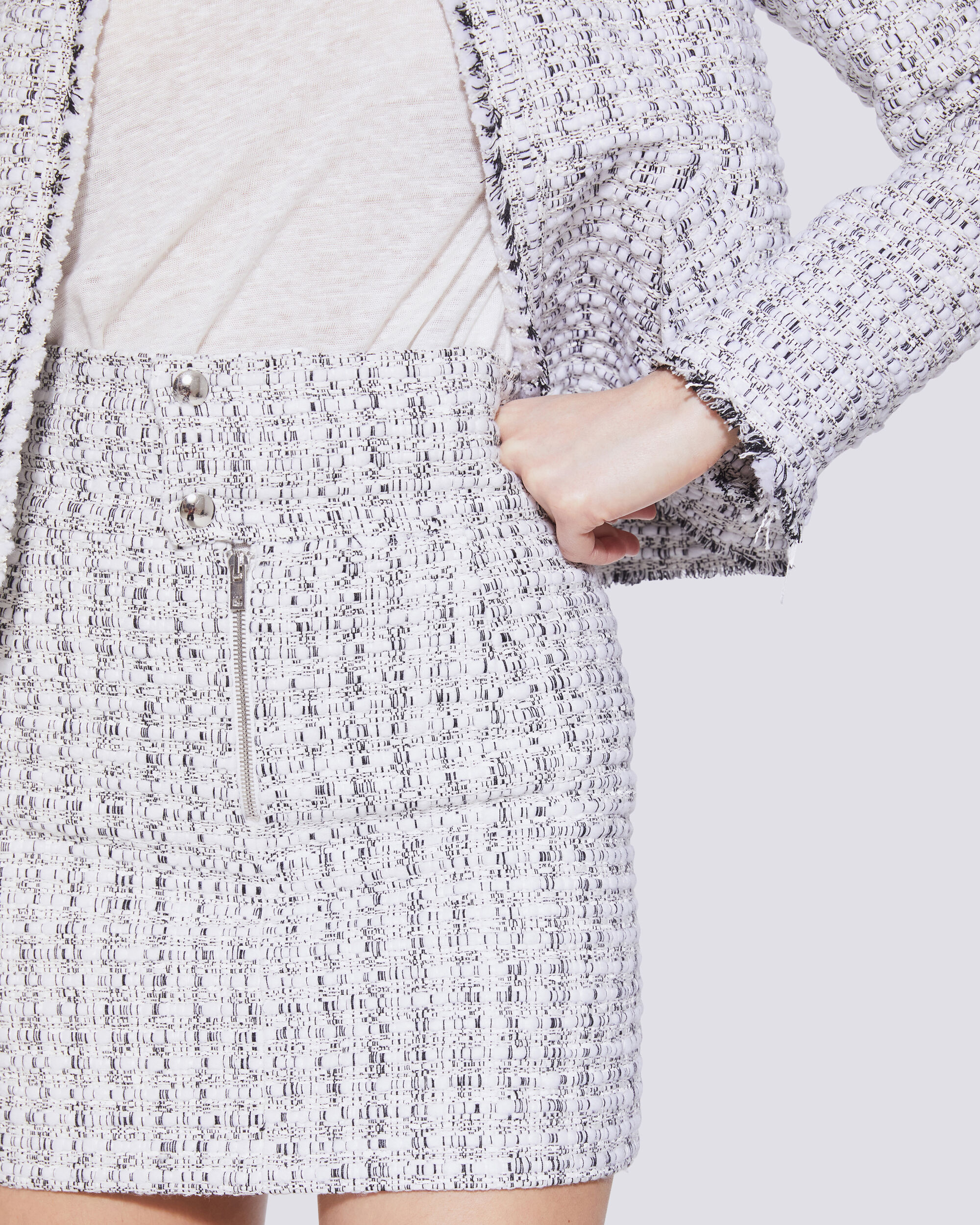 tweed button mini skirt