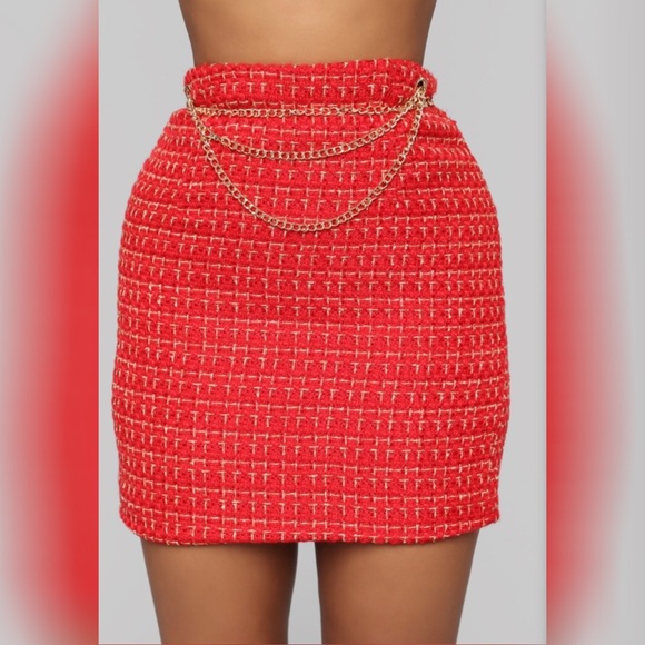 tweed red skirt