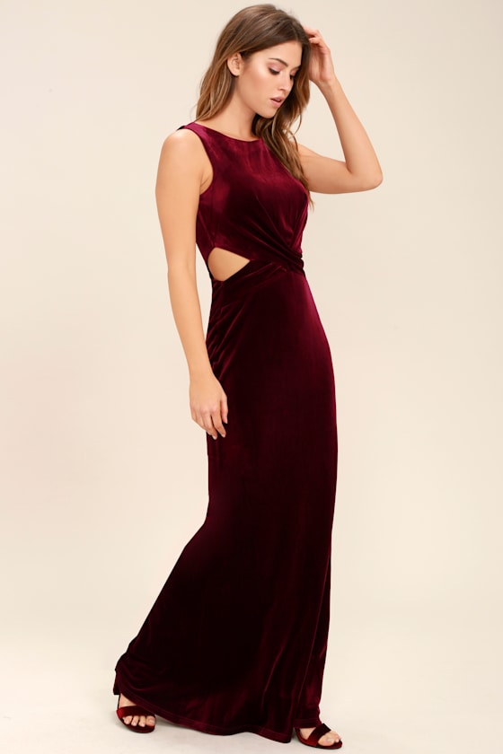 velvet maxi dress burgundy