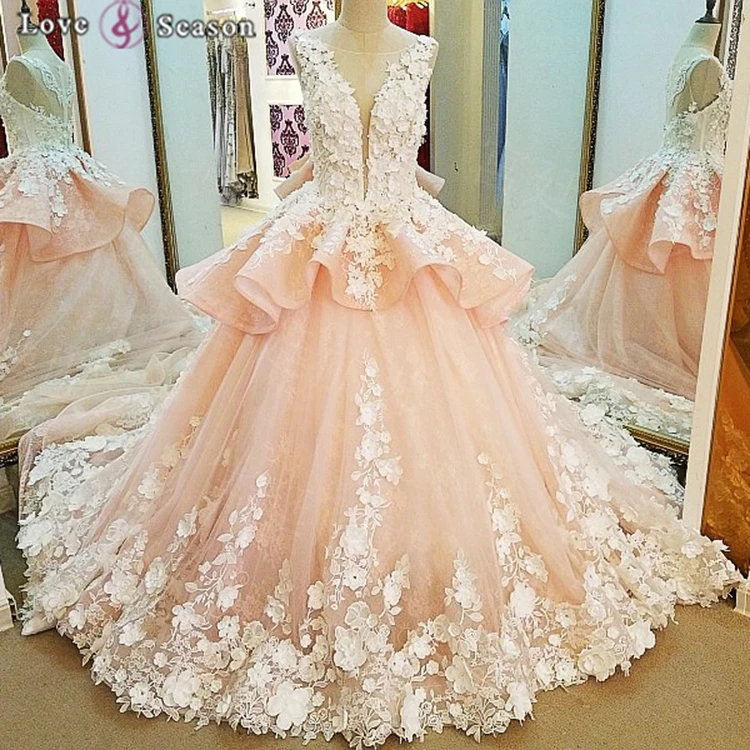 very light pink wedding dress