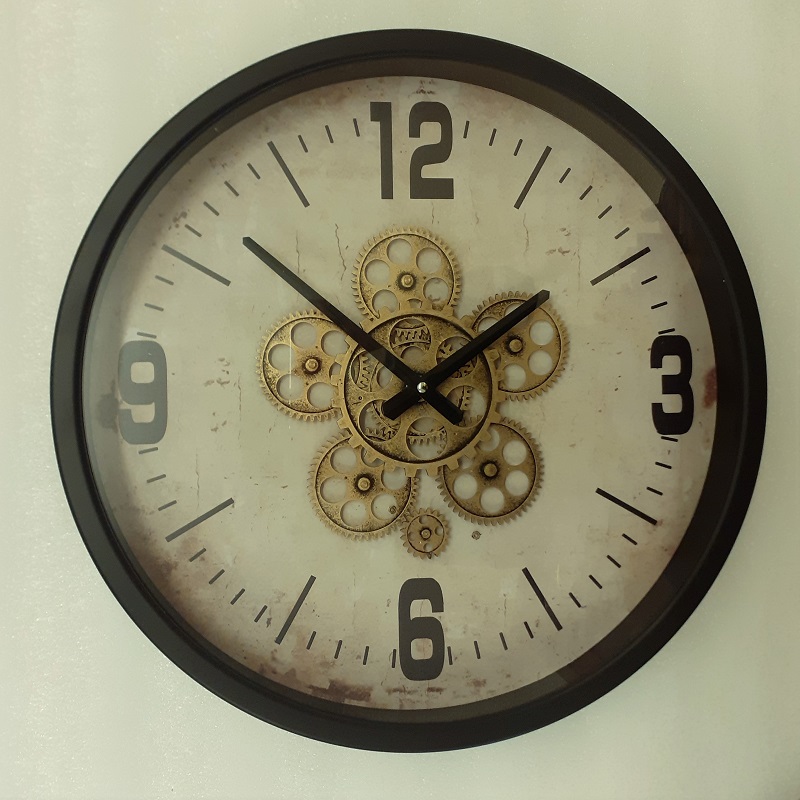 wandklok met draaiende radertjes