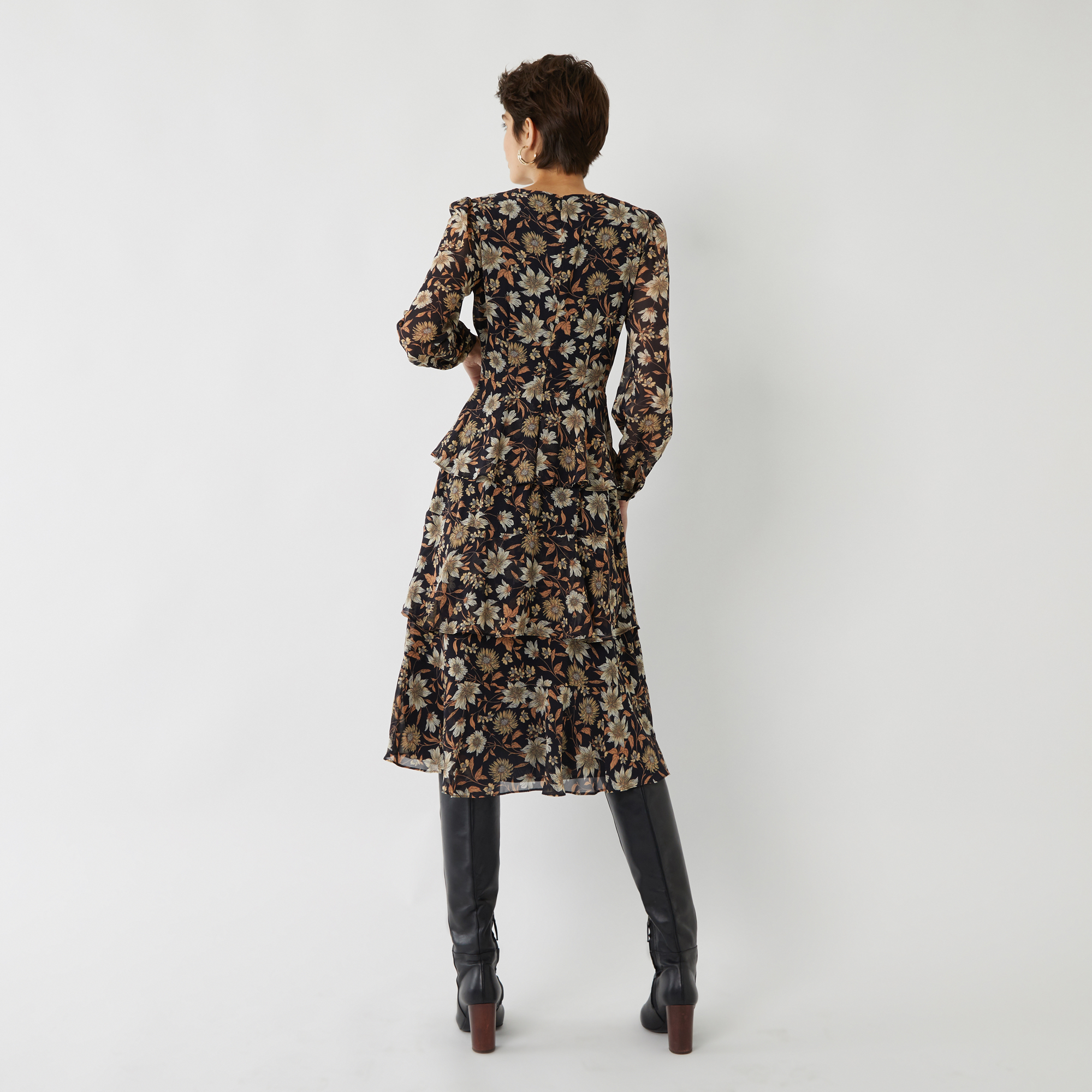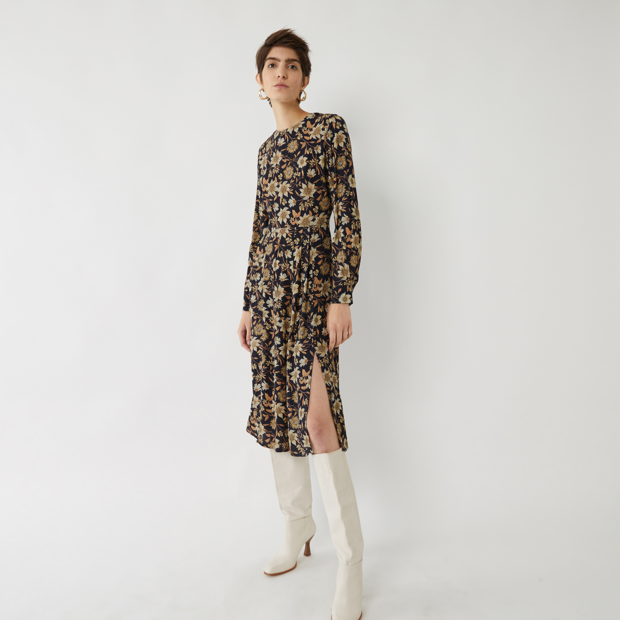 warehouse autumn daisy midi dress