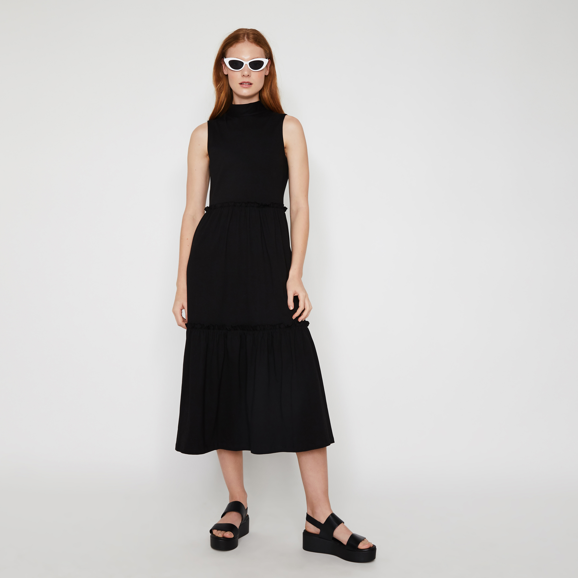 warehouse sleeveless midi dress