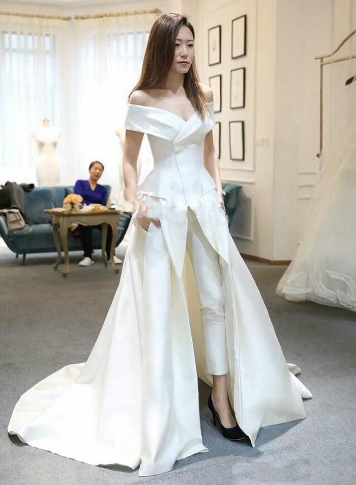 wedding pants suits with train