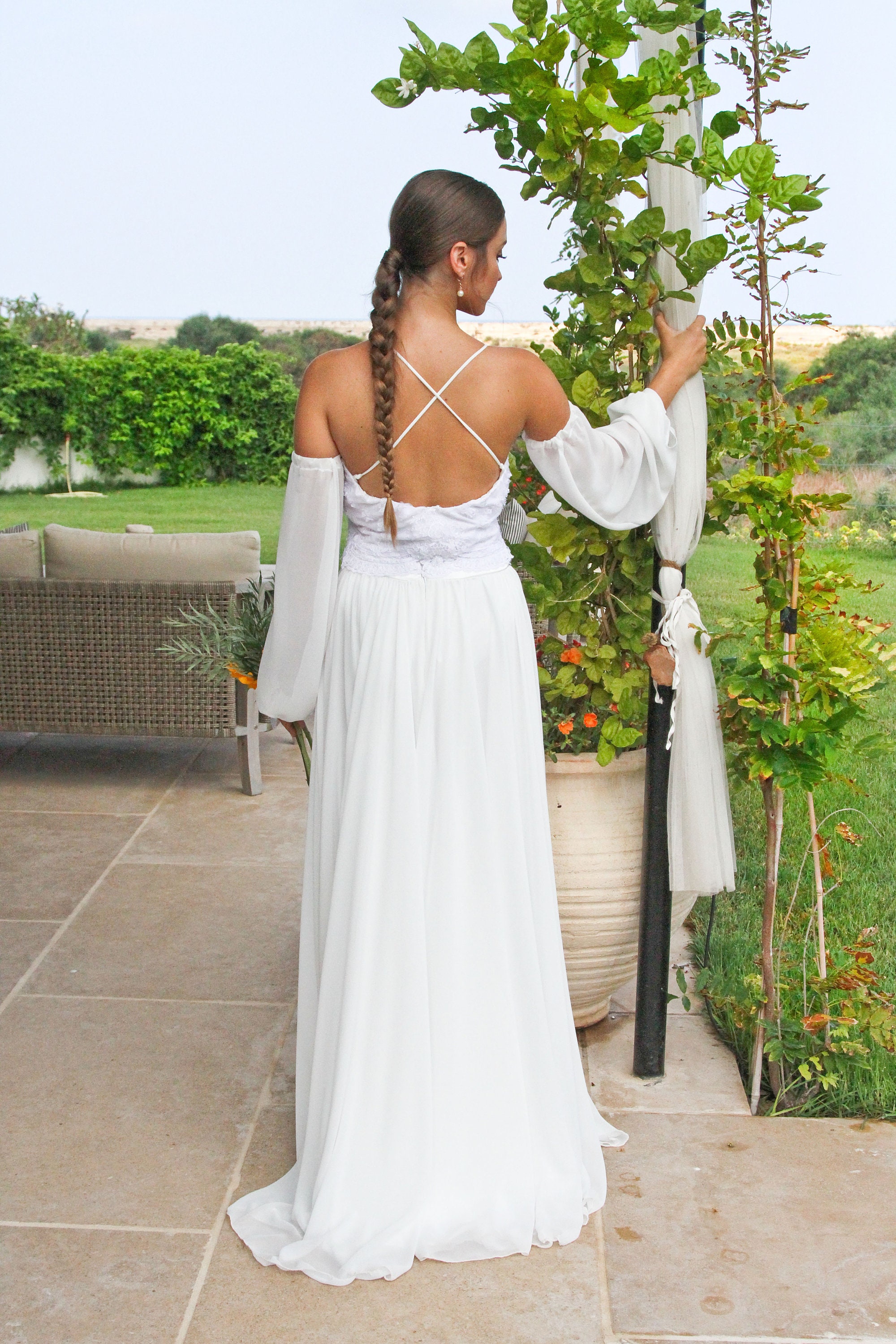 white boho two piece dress