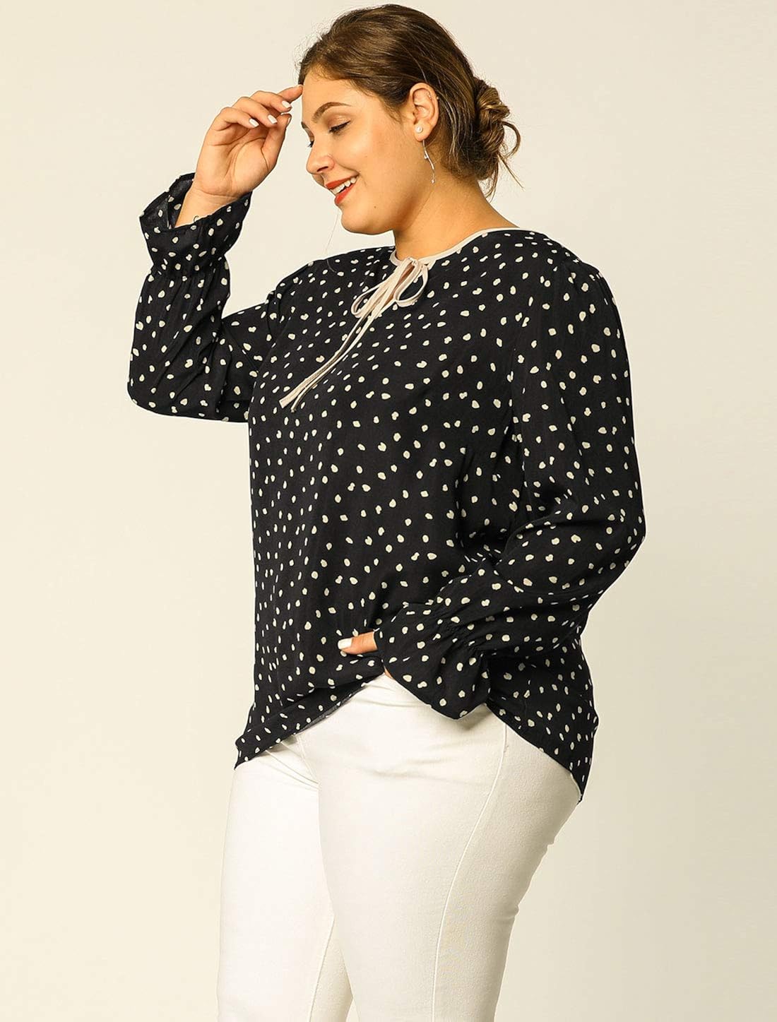 white bow tie blouse plus size