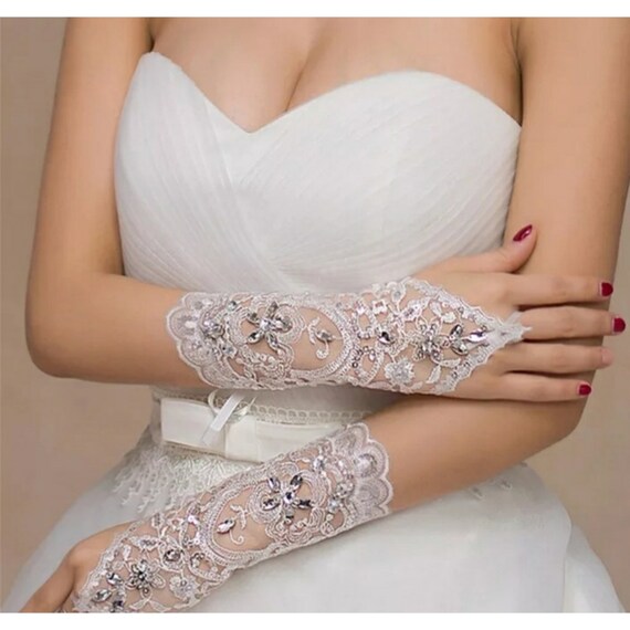 white bridal gloves