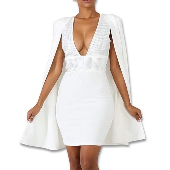 white cape mini dress
