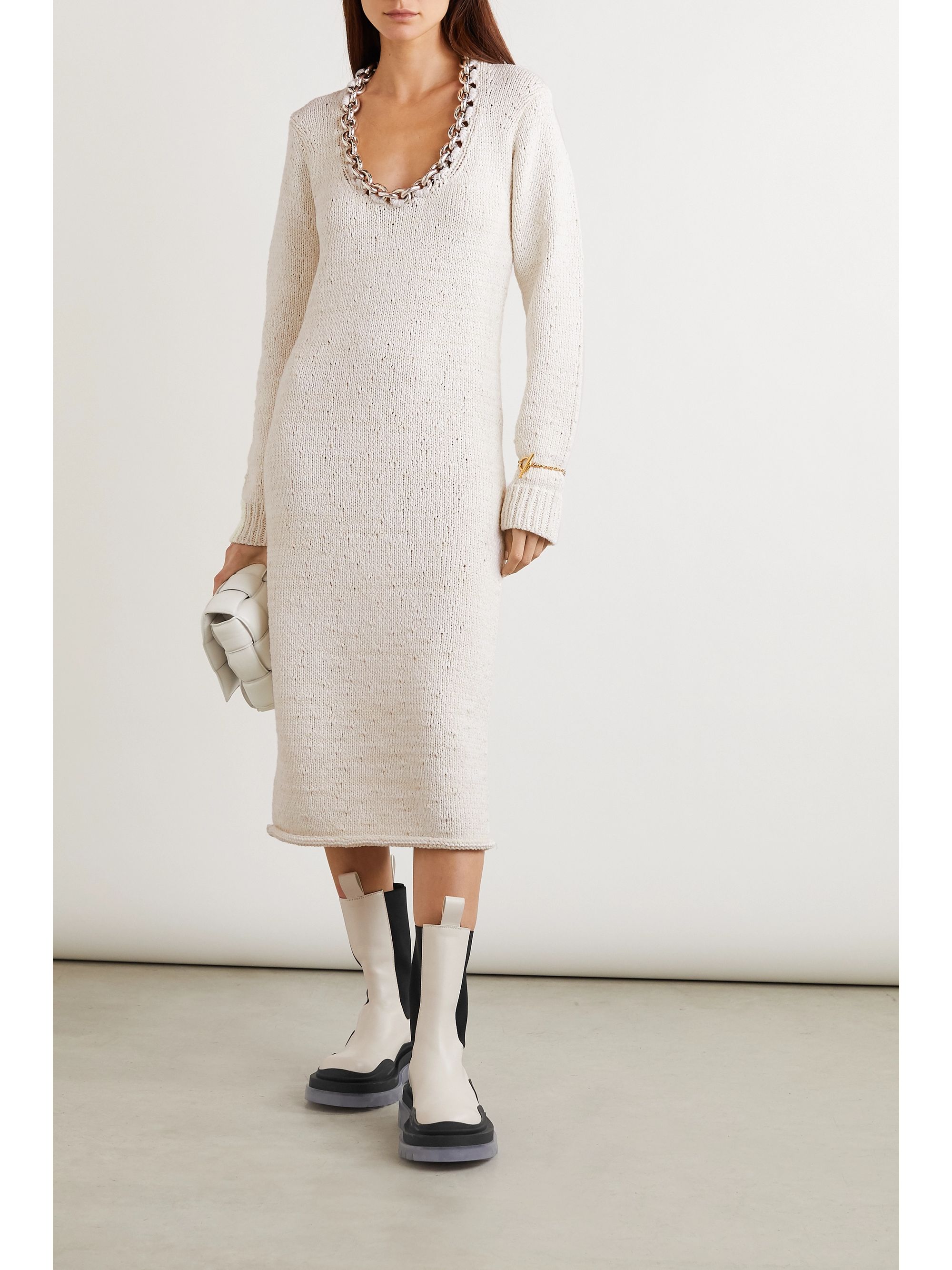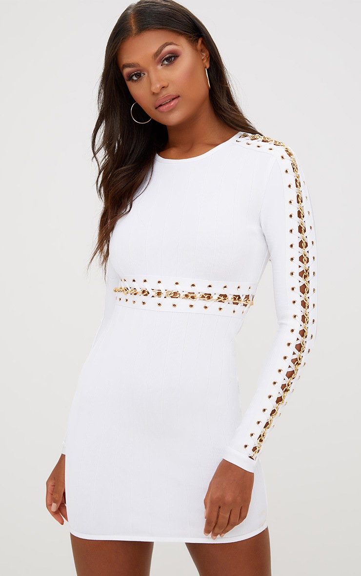 white chain dress