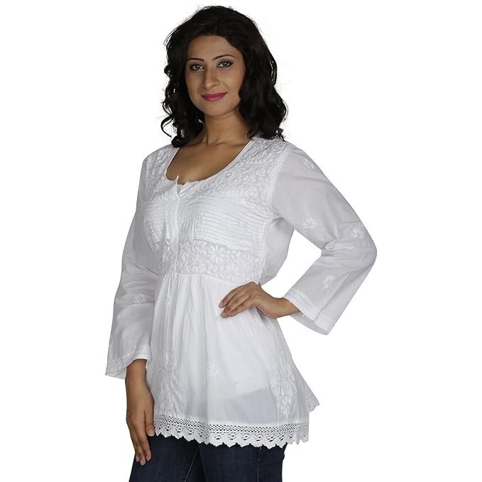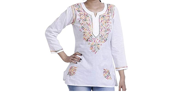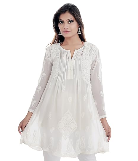 white chikankari short kurtis