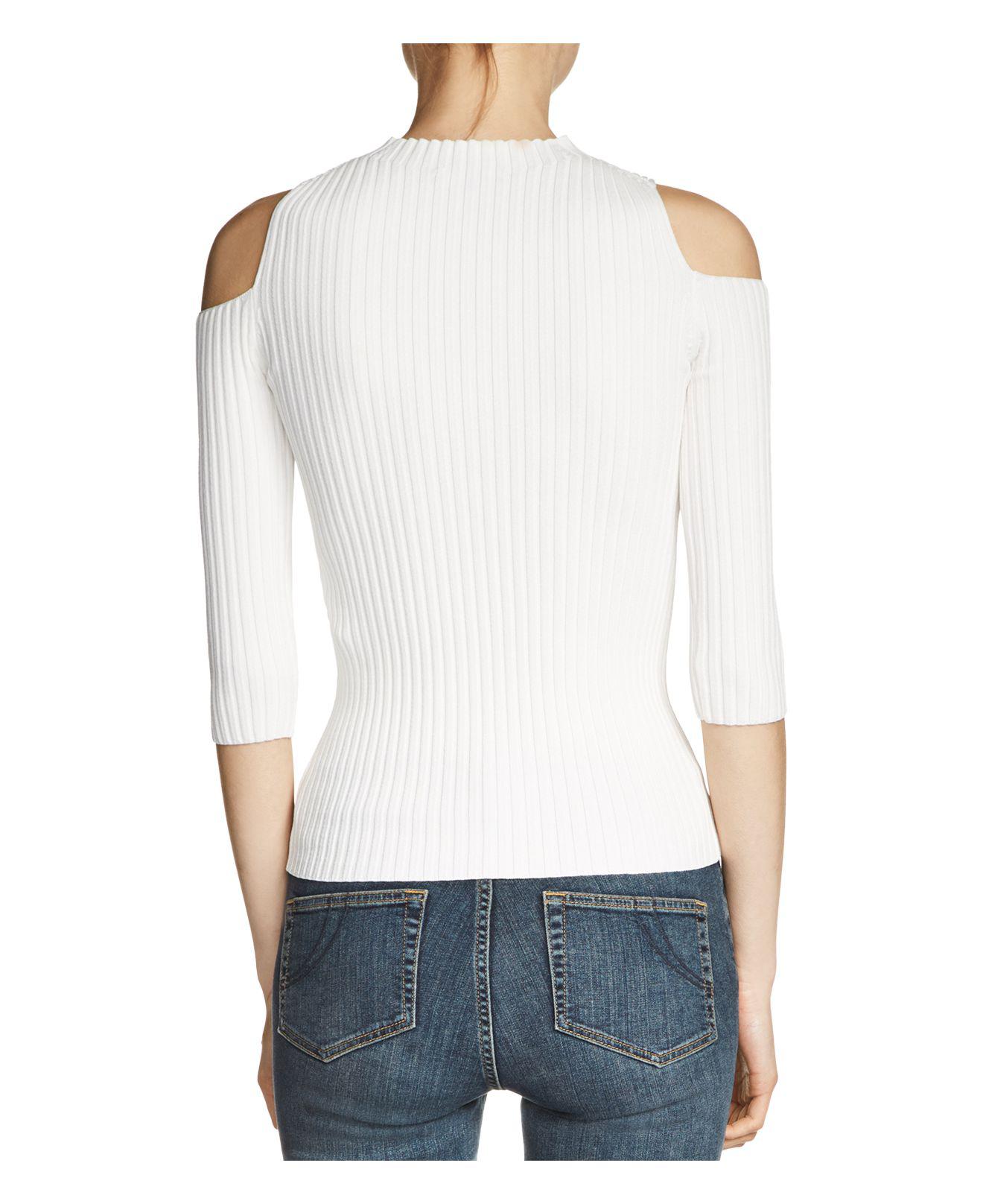white cold shoulder sweater