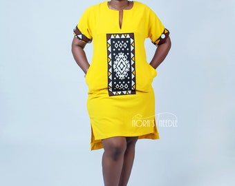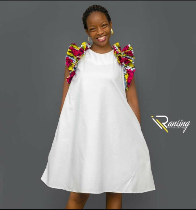 white dress with a touch of ankara