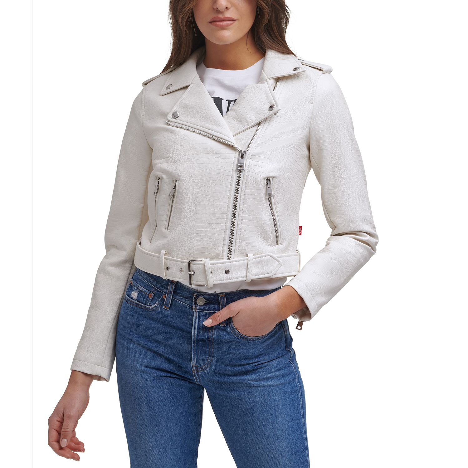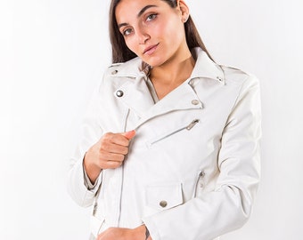 white faux leather jacket
