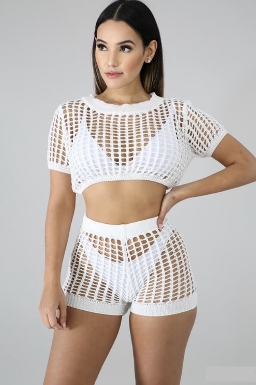 white fishnet shorts