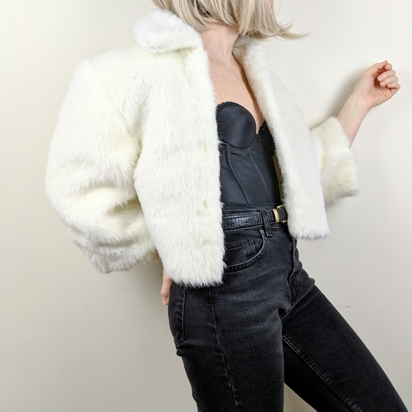 white fur cropped jacket