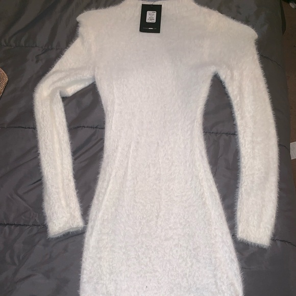 white fuzzy dress