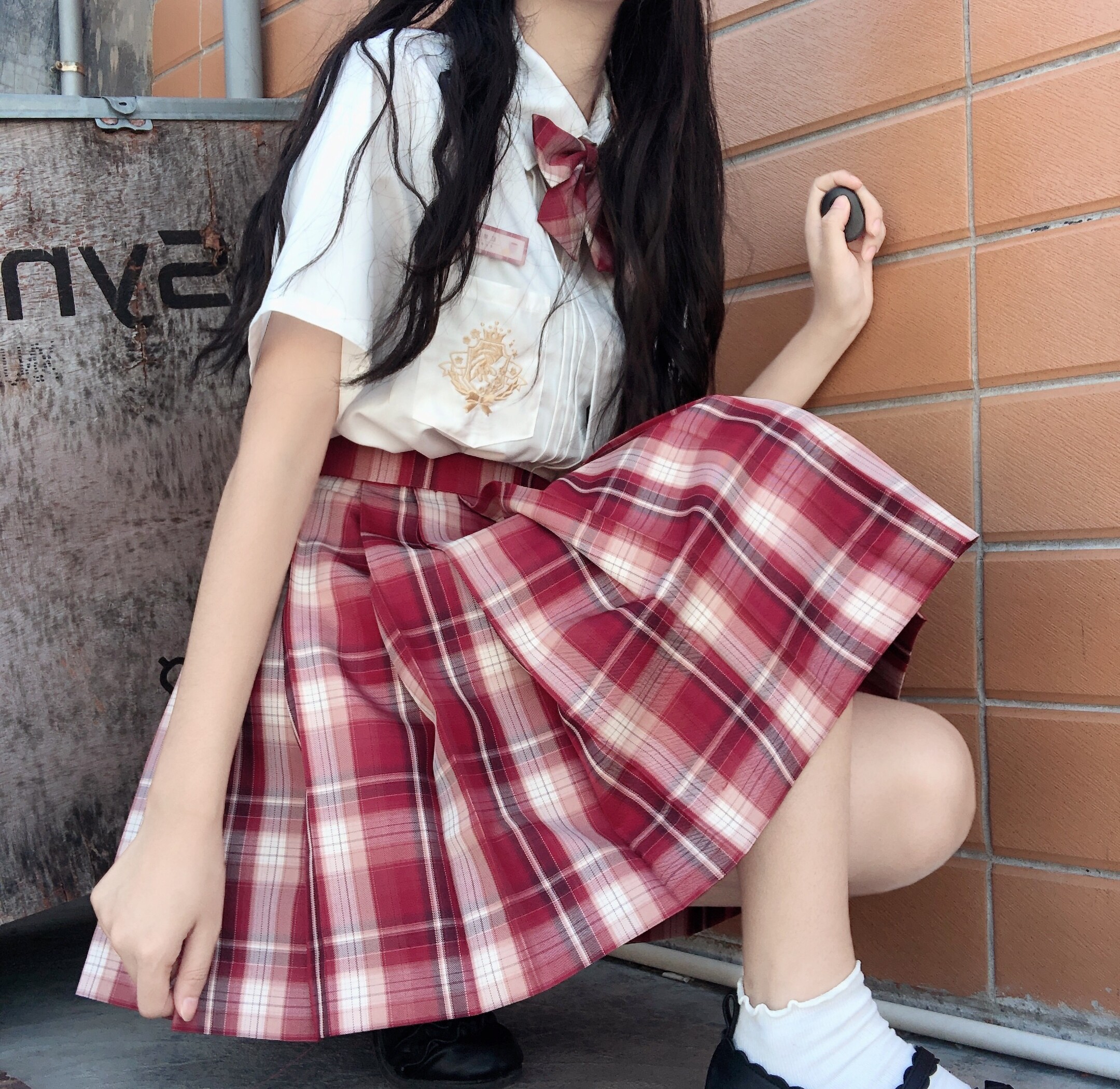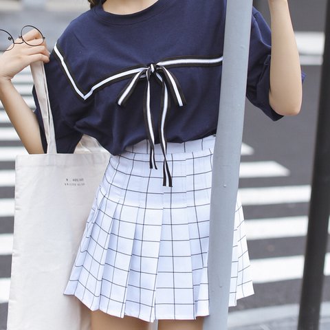 white grid skirt
