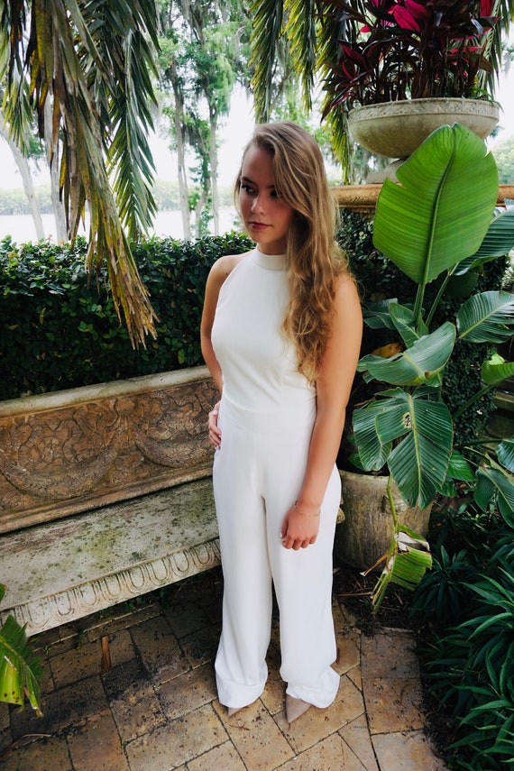 white halter jumpsuit wedding