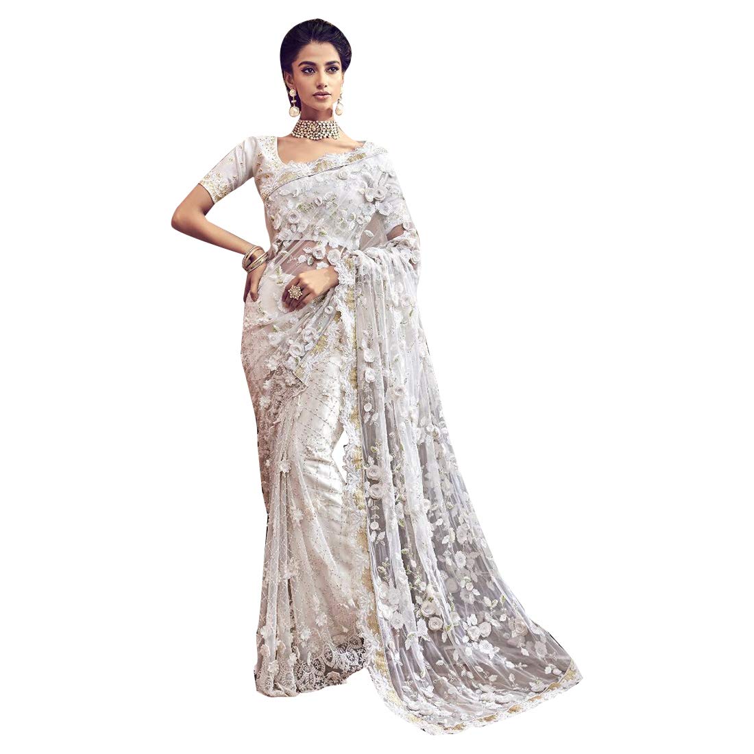 white lace wedding saree