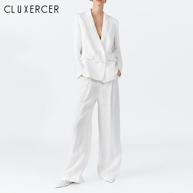white linen pant suit