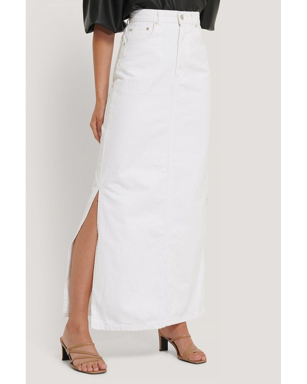 white maxi denim skirt