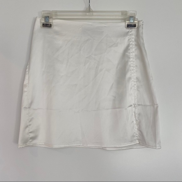 white mini satin skirt