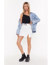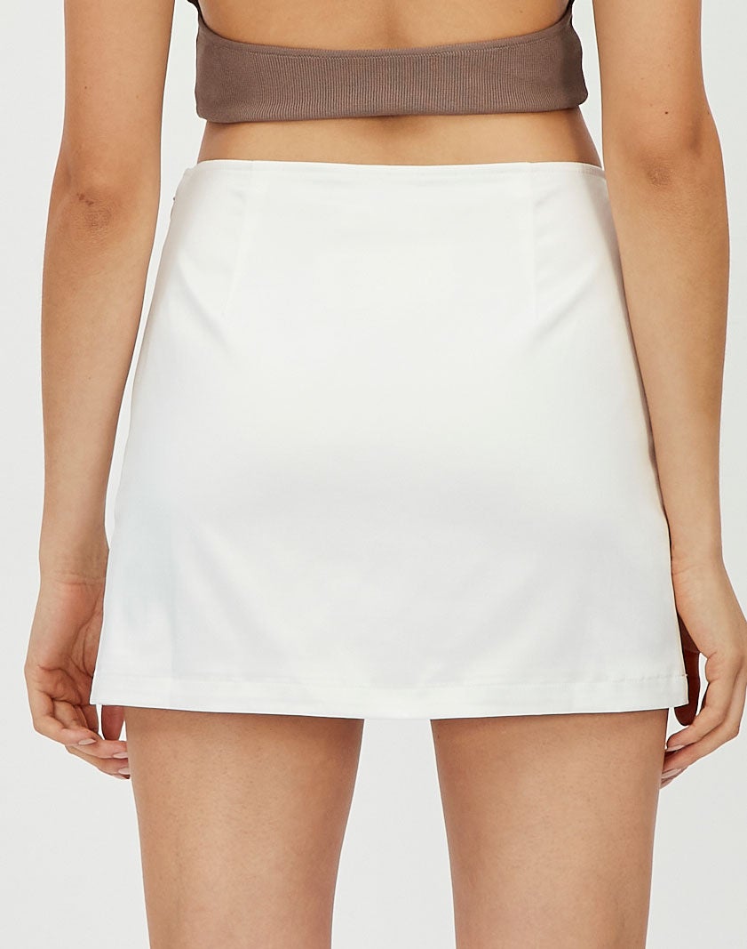 white mini slit skirt