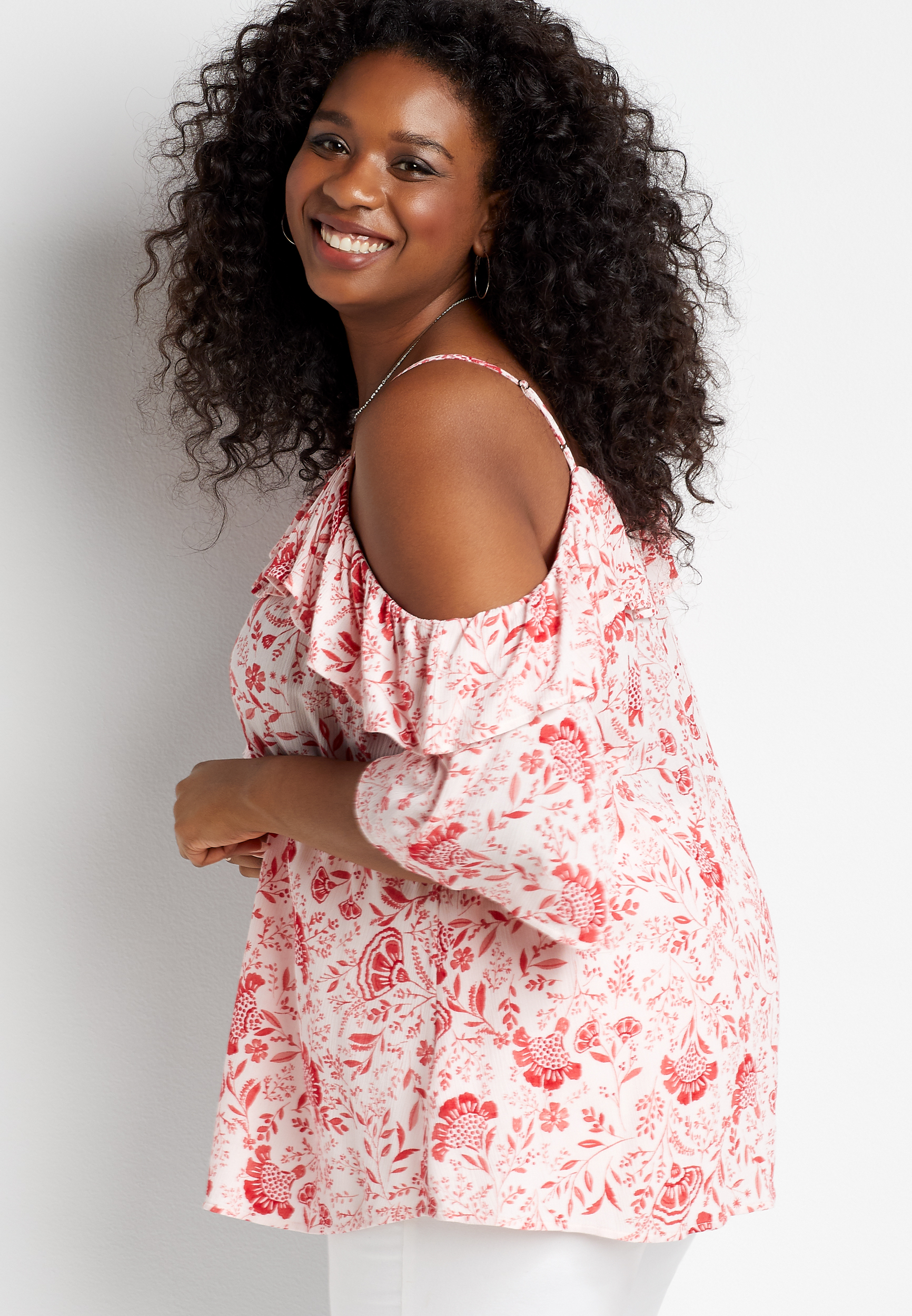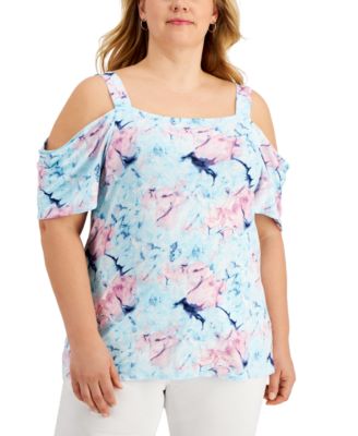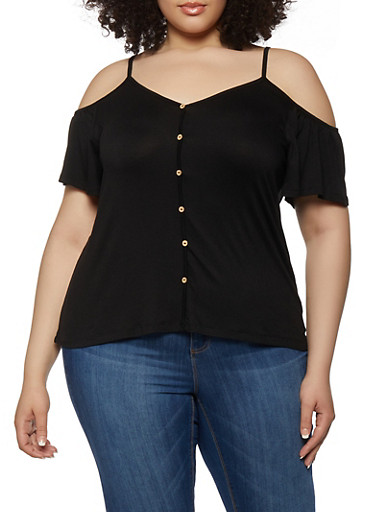 white plus size cold shoulder tops