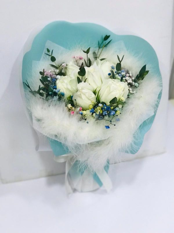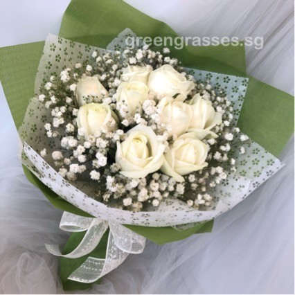 white rose hand bouquet