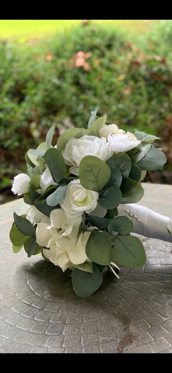white rose hydrangea bouquet