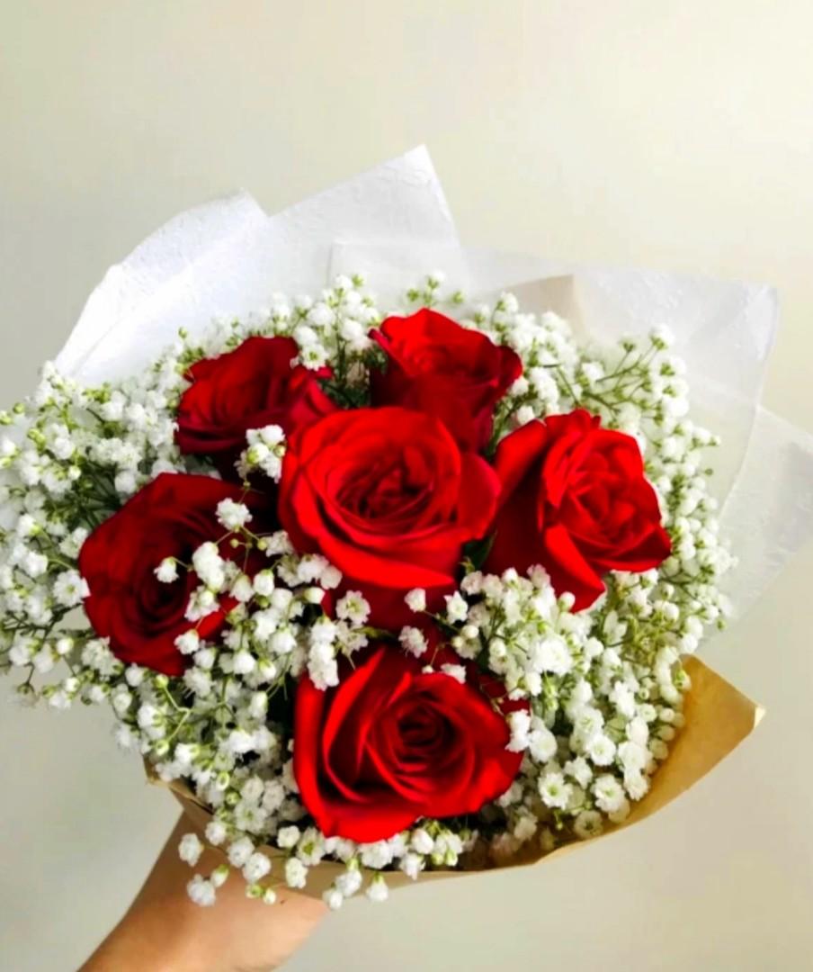 white roses and baby's breath bouquet