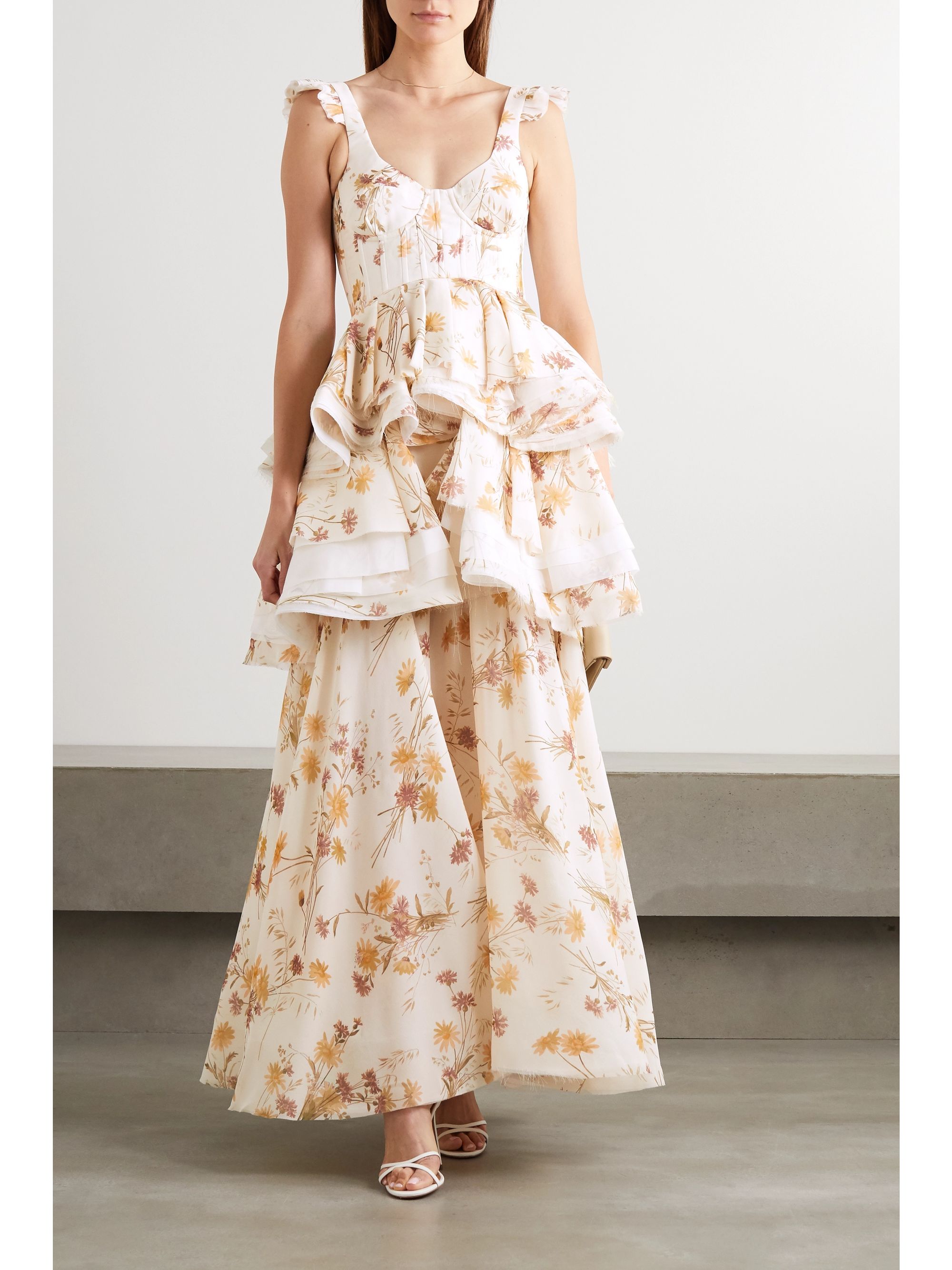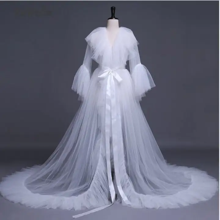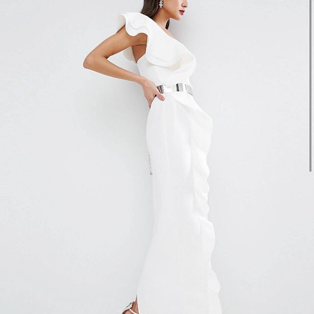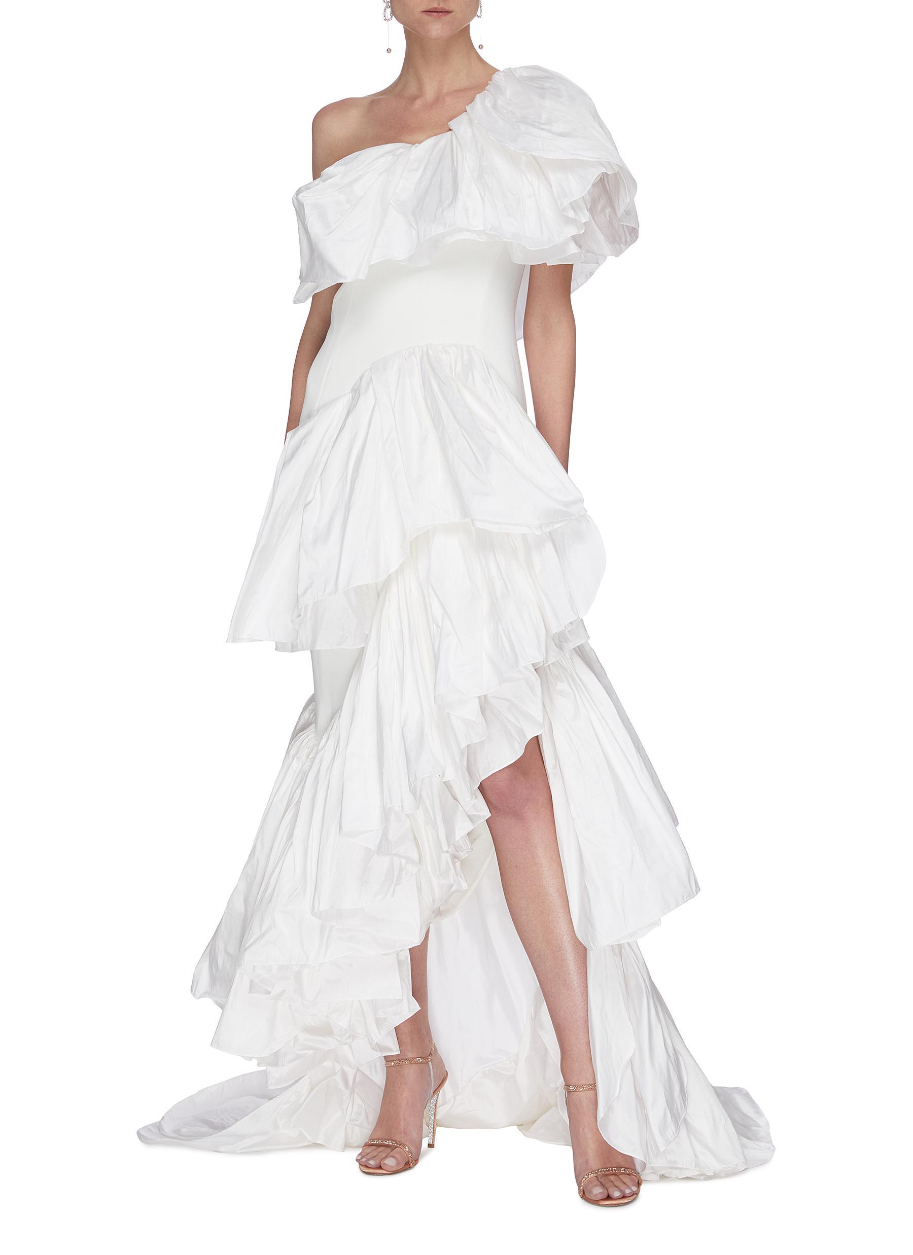 white ruffle gown