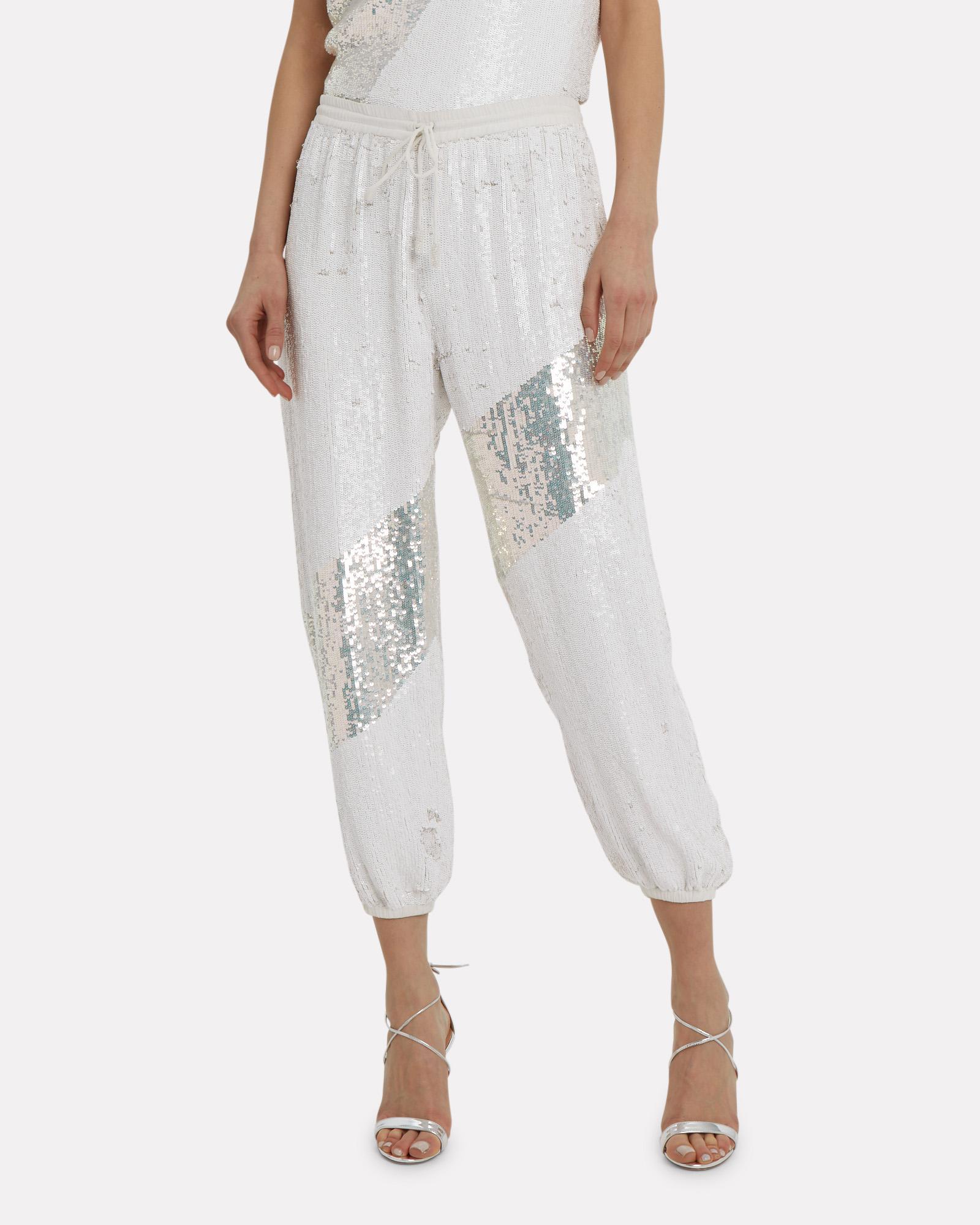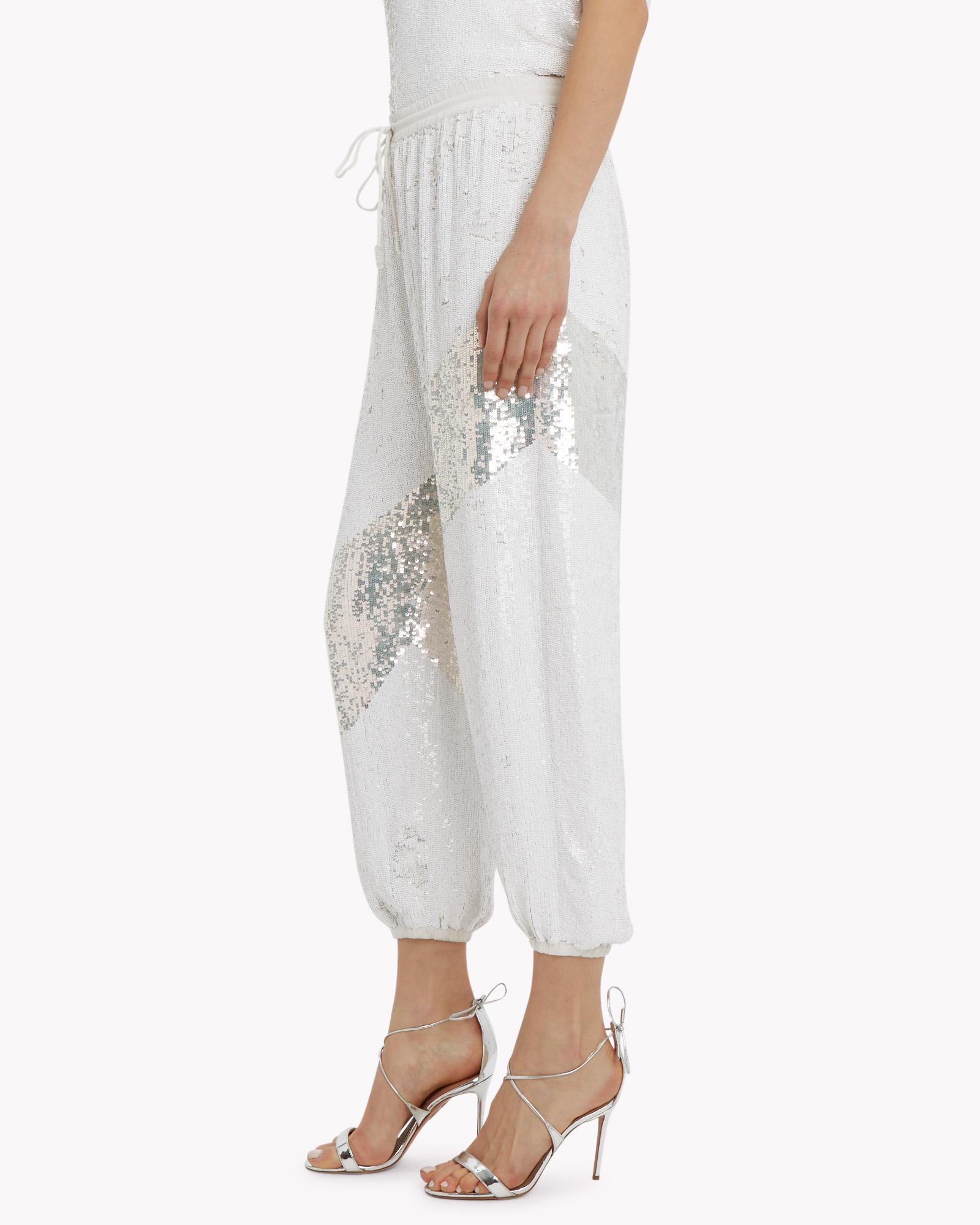 white sequin joggers
