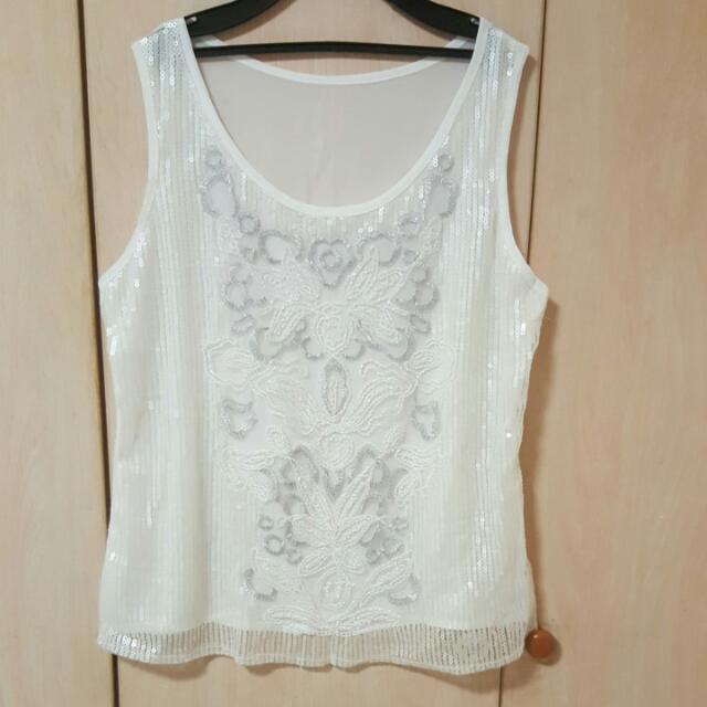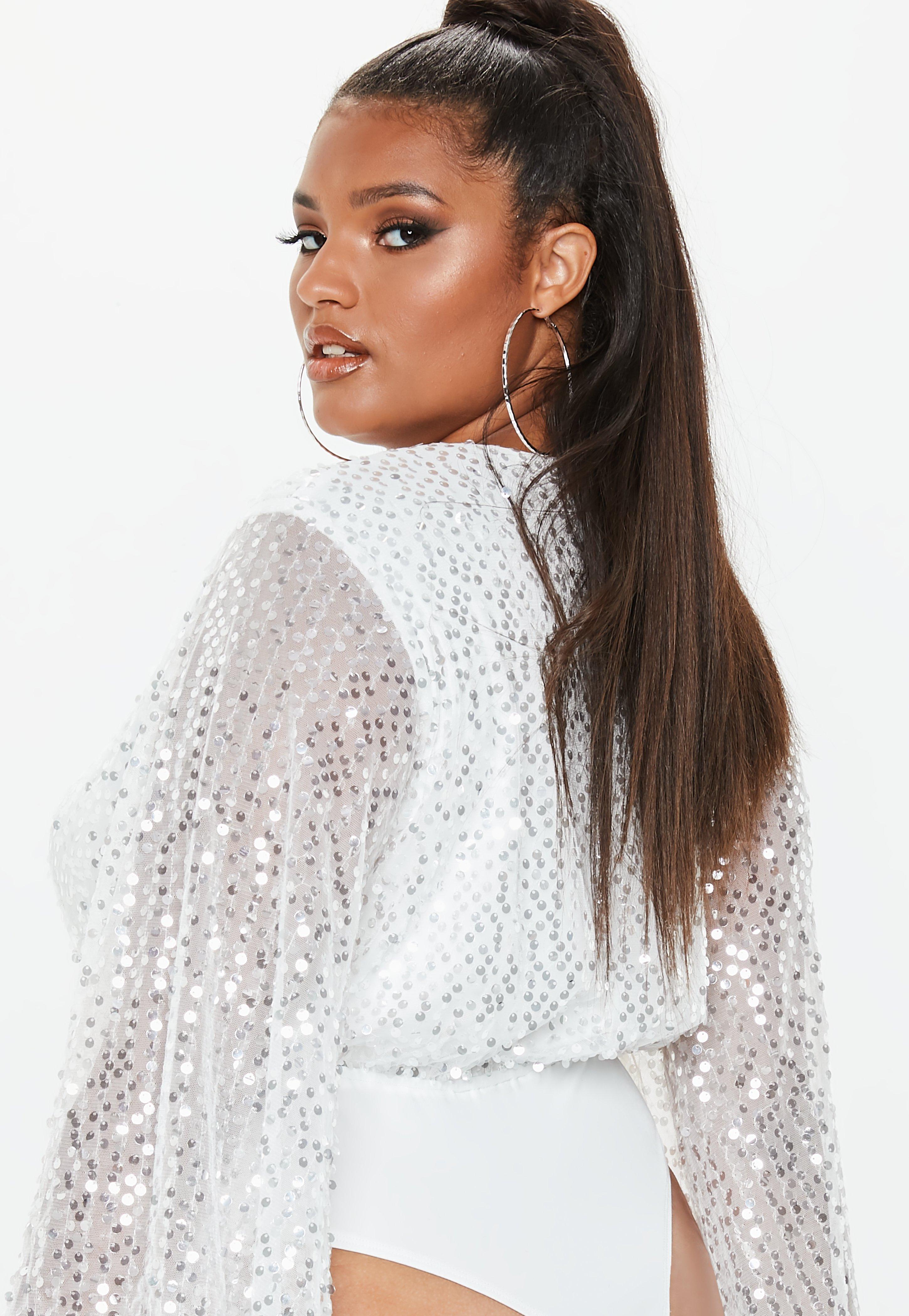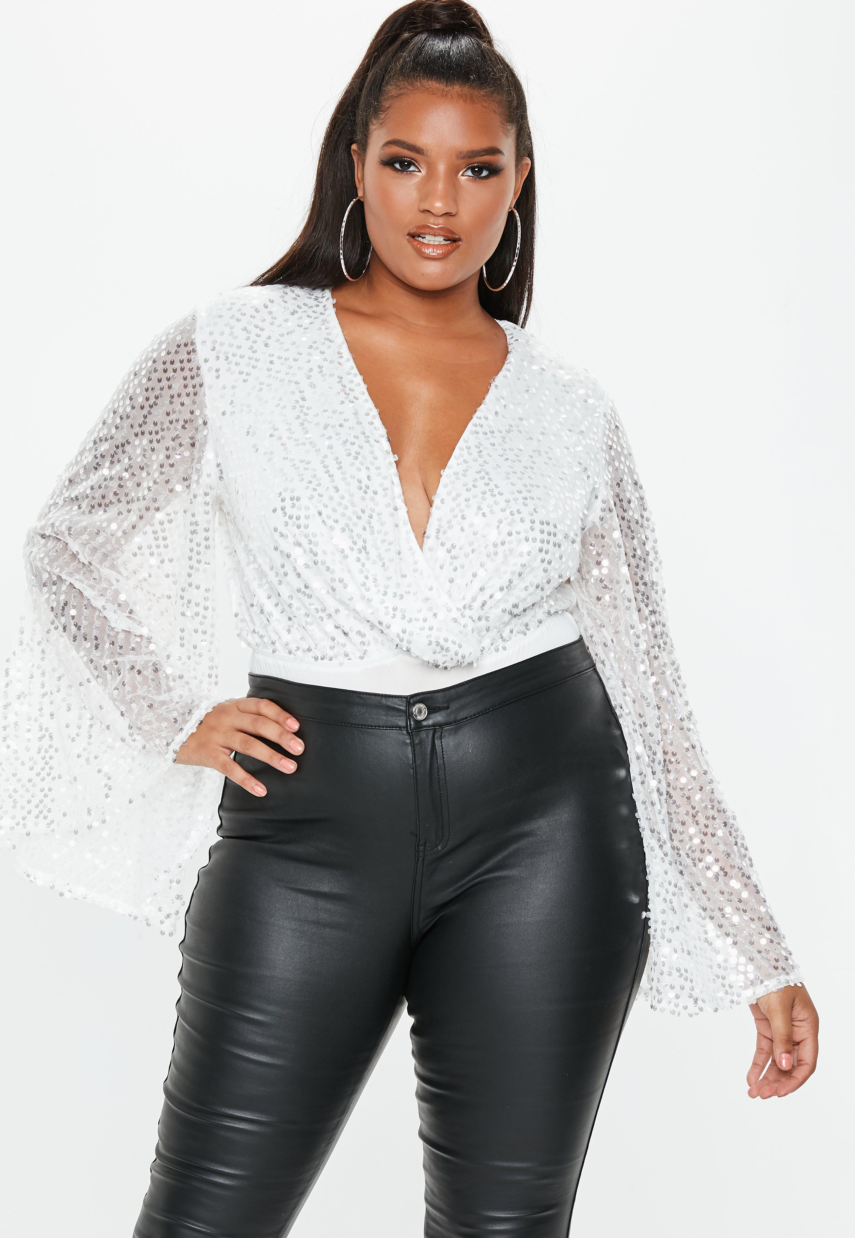white sequin plus size top