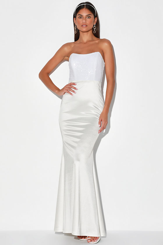 white sequin strapless dress