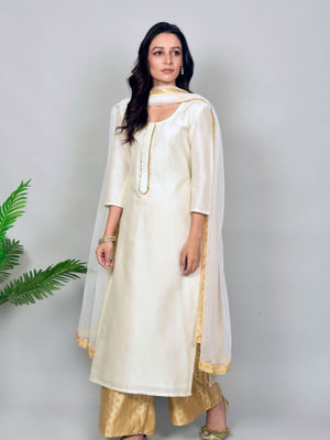 white silk suit