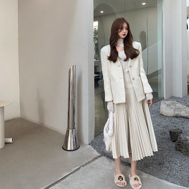 white split midi skirt