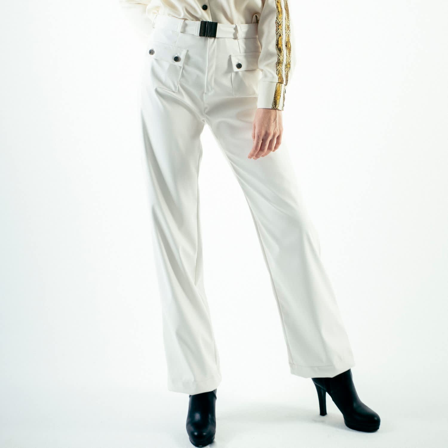 white vinyl trousers