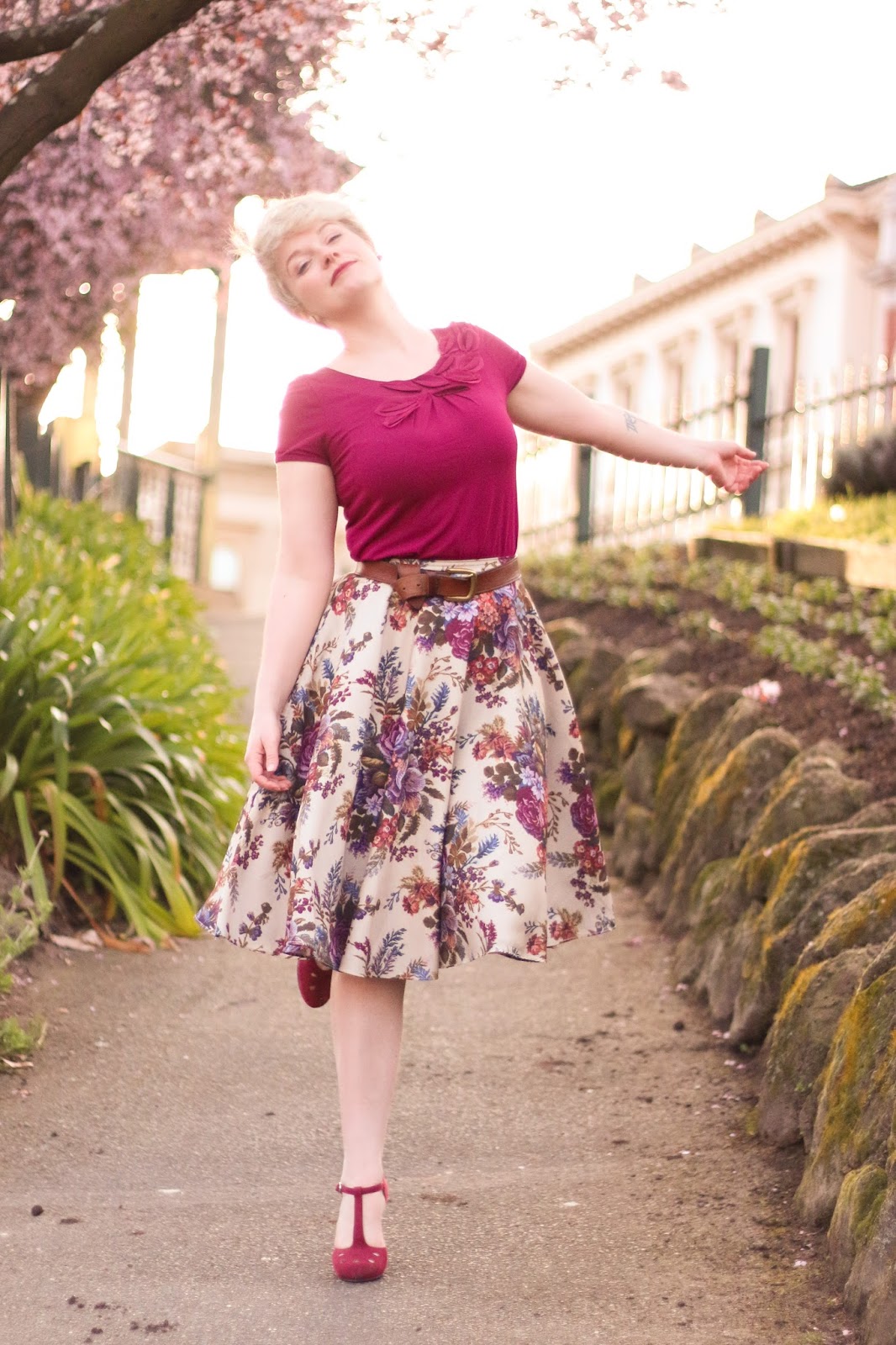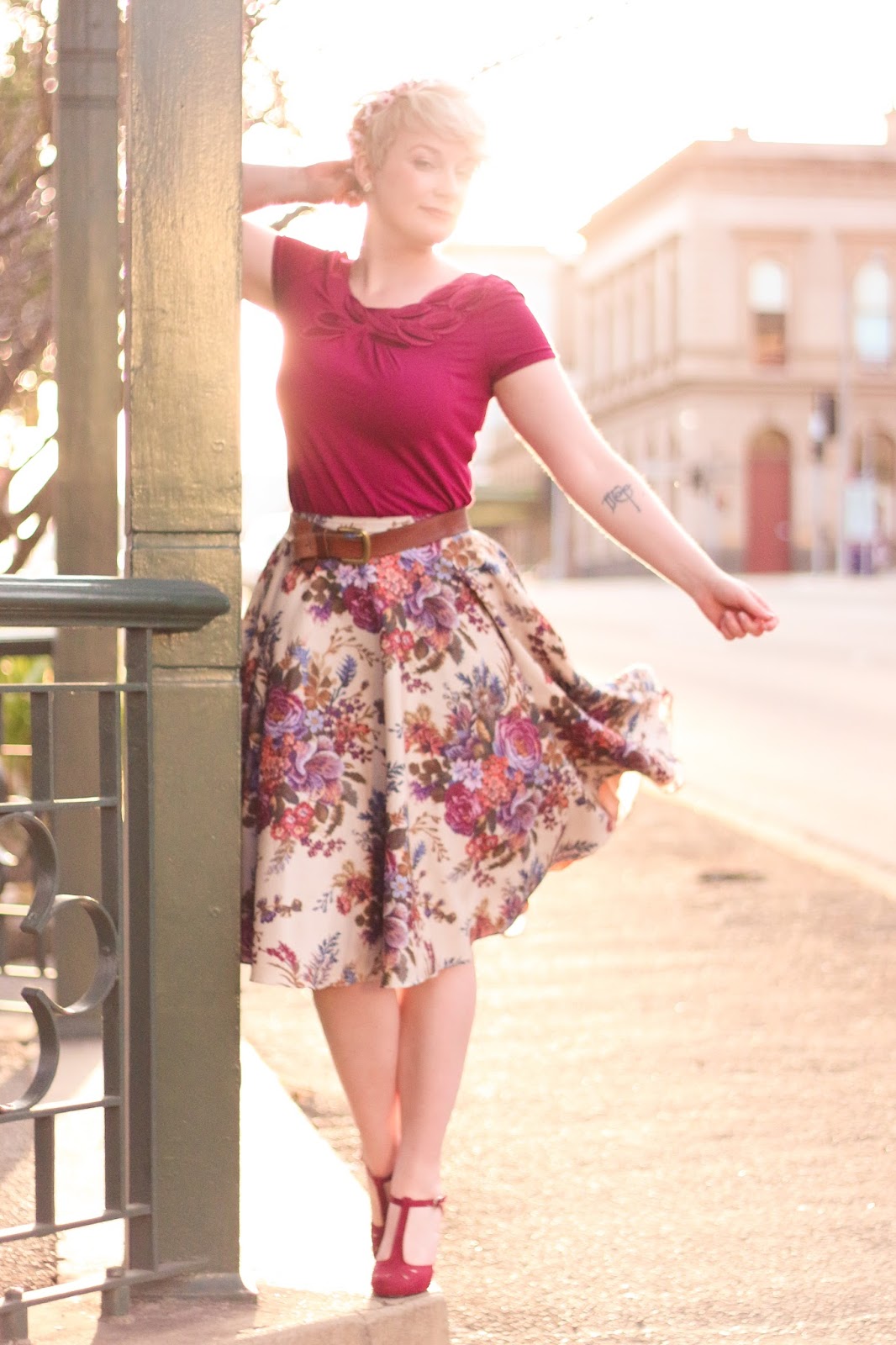 wine coloured skirt