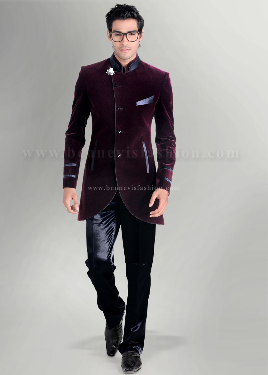 wine jodhpuri suit